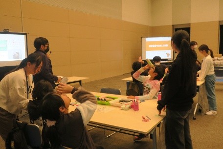 当日は、技術部職員8名と学生ボランティア6名が参加し、来場した児童や保護者に向けて、以下の3つのテーマを実施しました。